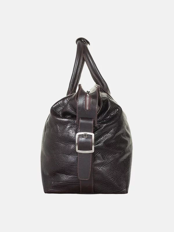 Дорожня сумка з фактурної чорної натуральної шкіри