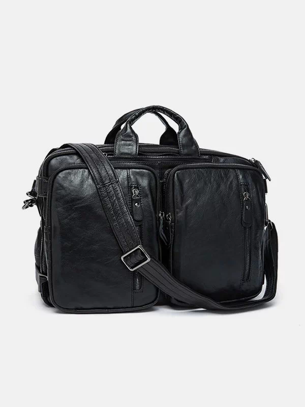Сумка-трансформер BB-7014 – відмінний вибір для ваших речей, ґаджетів, документів формату A-4 тощо. Виготовлена з гладкої натуральної шкіри чорного кольору, невибаглива за доглядом, має потужний зовнішній вигляд, якісний пошив. Незамінний аксесуар для офісних працівників, торгових та офіційних представників тощо. Країна виробник – Китай.