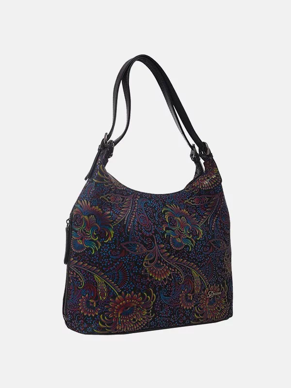 Жіноча сумка D-3699 – надійний вибір для речей, грошей, будь-яких дрібниць (косметики, ключів, павербанків, навушників, смартфонів, зарядних пристроїв тощо). Пошита з фактурної натуральної шкіри з квітковим принтом. Сумка невибаглива за доглядом, має ефектний зовнішній вигляд, якісний пошив. Додасть елегантності практично будь-якому образу. Країна виробник – Туреччина.