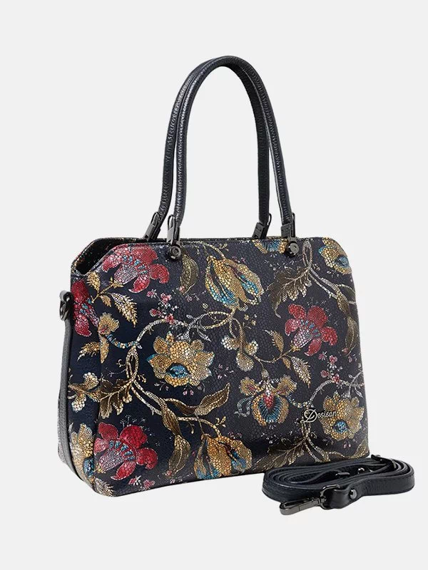 Жіноча сумка D-3841 – розумний вибір для речей, грошей, будь-яких дрібниць (косметики, ключів, павербанків, навушників, смартфонів, зарядних пристроїв тощо). Пошита з фактурної натуральної шкіри з лаковим напиленням та квітковим візерунком. Сумка невибаглива за доглядом, має ефектний зовнішній вигляд, якісний пошив. Додасть елегантності практично будь-якому образу. Країна виробник – Туреччина.