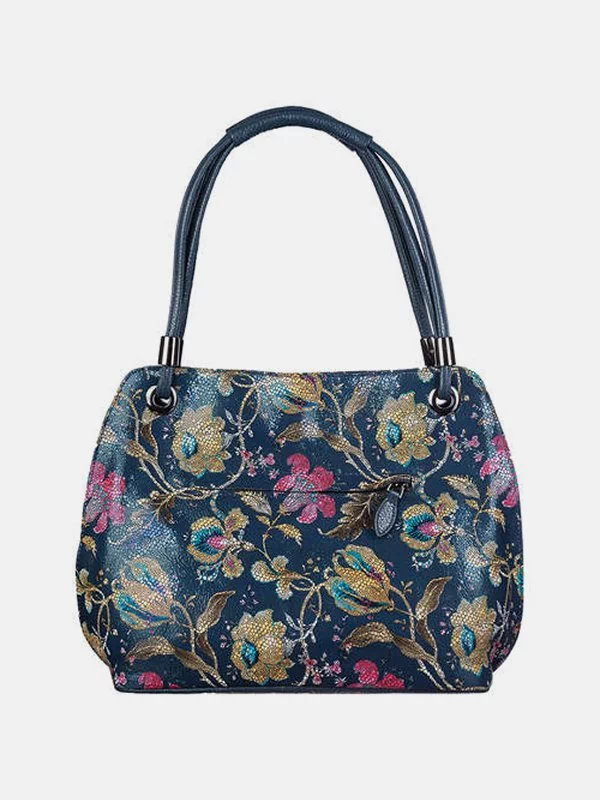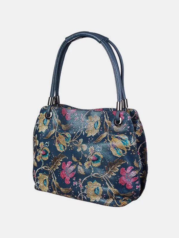 Жіноча сумка D-4641 – оптимальне рішення для невеликих речей, грошей, будь-яких дрібниць (косметики, ключів, павербанків, навушників, смартфонів, зарядних пристроїв тощо). Пошита з синьої фактурної натуральної шкіри з лаковим напиленням та квітковим візерунком. Сумка невибаглива за доглядом, має акуратний зовнішній вигляд, якісний пошив. Додасть елегантності практично будь-якому образу. Країна виробник – Туреччина.
