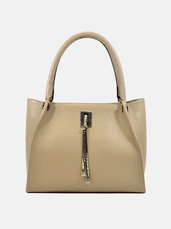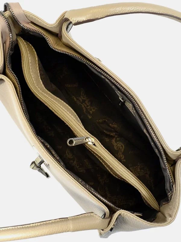 Жіноча сумка D-6328 – грамотний вибір для речей, грошей, будь-яких дрібниць (косметики, ключів, павербанків, навушників, смартфонів, зарядних пристроїв тощо). Пошита з фактурної натуральної шкіри флотар бежевого відтінку. Сумка невибаглива за доглядом, має акуратний зовнішній вигляд, якісний пошив. Вигідно доповнить практично будь-який образ. Країна виробник – Туреччина.