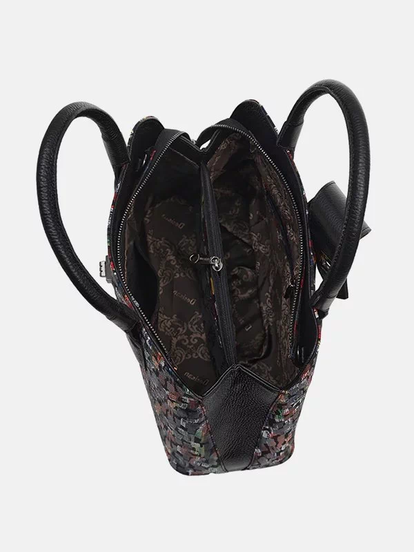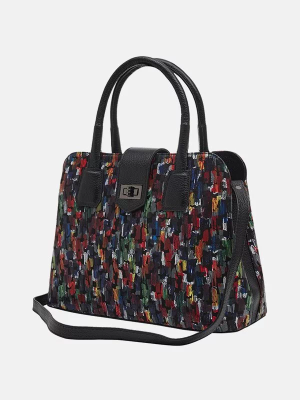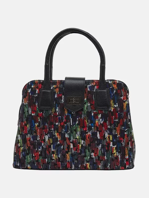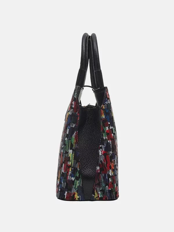 Стильна багатокольорова шкіряна сумка з квітковим принтом
