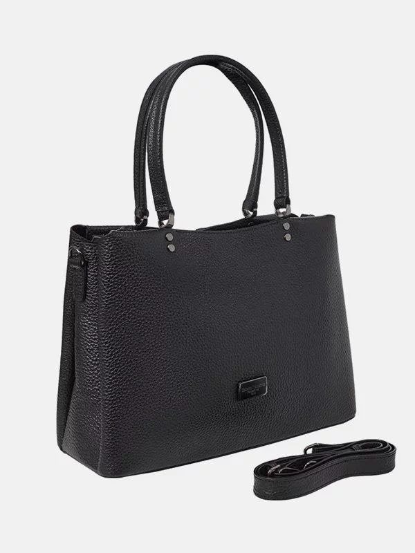 Чорна м'яка сумка з фактурної натуральної шкіри