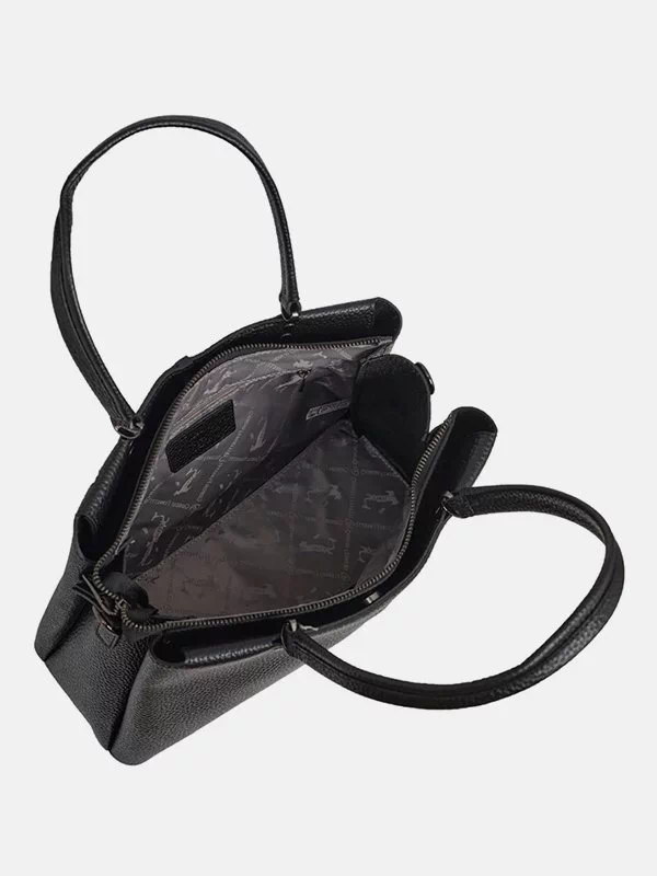 Жіноча сумка GF-657 – чудовий варіант для речей, будь-яких дрібниць (косметики, грошей, ключів, павербанків, навушників, смартфонів, зарядних пристроїв тощо). Пошита з фактурної натуральної шкіри флотар чорного кольору. Сумка невибаглива за доглядом, має акуратний зовнішній вигляд, якісний пошив. Вигідно підкреслить практично будь-який образ. Країна виробник бренду – Італія.