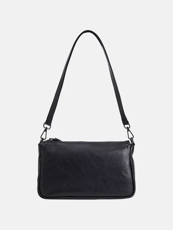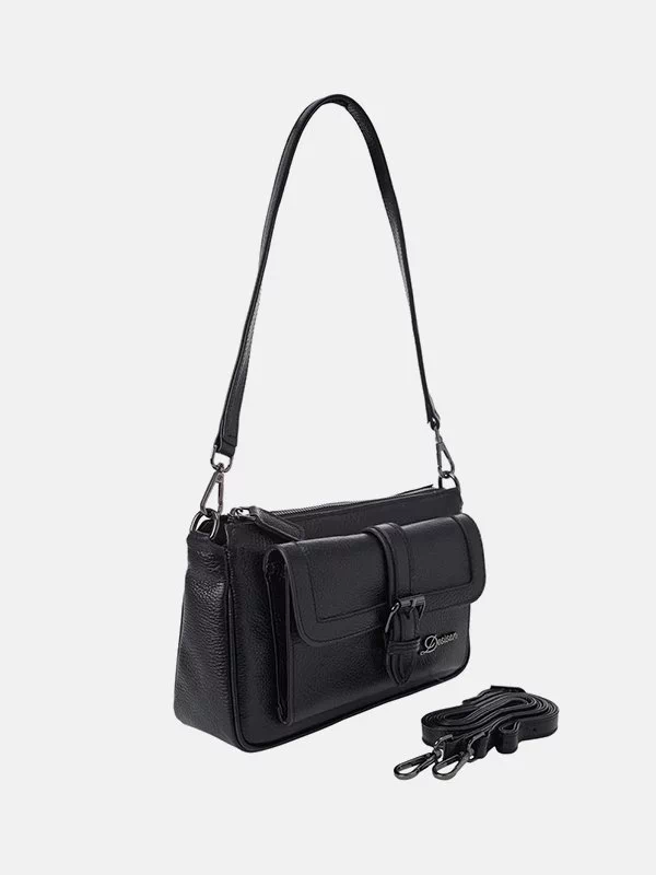 Жіноча сумка D-0101 – ідеальне рішення для грошей, будь-яких дрібниць (косметики, ключів, павербанків, навушників, смартфонів, зарядних пристроїв тощо). Пошита з зернистої натуральної шкіри флотар чорного кольору. Кросбоді невибаглива за доглядом, має ефектний зовнішній вигляд, якісний пошив. Додасть елегантності практично будь-якому образу. Країна виробник – Туреччина.