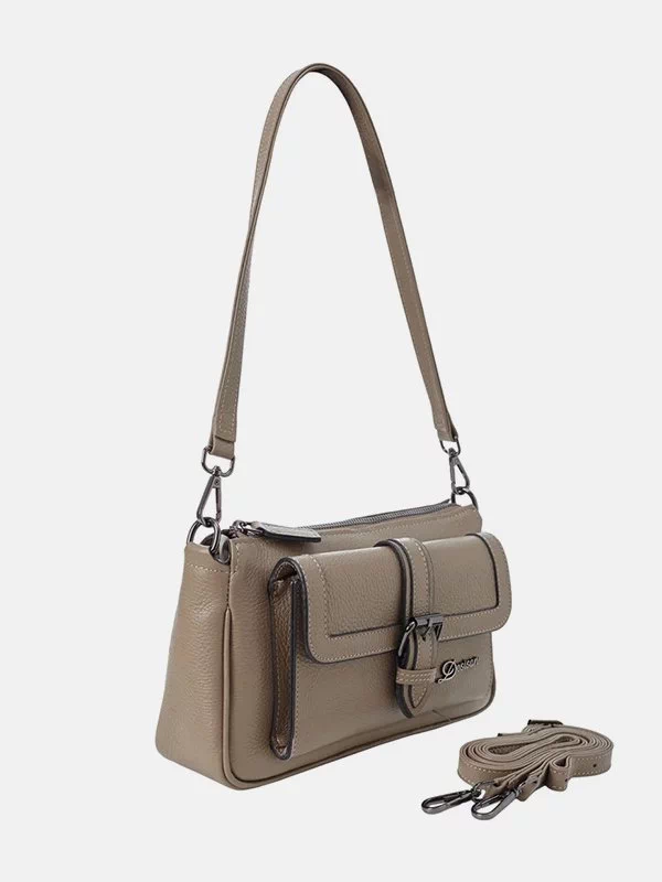Жіноча сумка D-0128 – розумне рішення для грошей, будь-яких дрібниць (косметики, ключів, павербанків, навушників, смартфонів, зарядних пристроїв тощо). Пошита з фактурної натуральної шкіри флотар у бежевому виконанні. Кросбоді невибаглива за доглядом, має елегантний зовнішній вигляд, якісний пошив. Вдало доповнить практично будь-який образ. Країна виробник – Туреччина.
