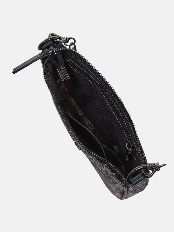 Жіноча сумка D-7041 – безпрограшний вибір для грошей, будь-яких дрібниць (косметики, ключів, павербанків, навушників, смартфонів, зарядних пристроїв тощо). Пошита з синьої фактурної натуральної шкіри з лаковим напиленням та квітковим візерунком. Сумка невибаглива за доглядом, має елегантний зовнішній вигляд, якісний пошив. Вдало підкреслить практично будь-який образ. Країна виробник – Туреччина.