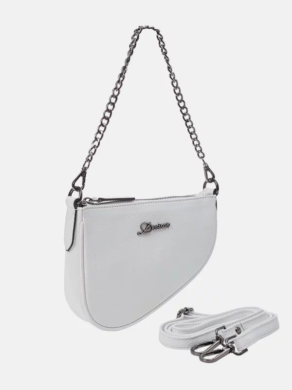 Жіноча сумка D-7066 – надійний вибір для грошей, будь-яких дрібниць (косметики, ключів, павербанків, навушників, смартфонів, зарядних пристроїв тощо). Пошита з фактурної натуральної шкіри флотар у білому виконанні. Сумка невибаглива за доглядом, має ефектний зовнішній вигляд, якісний пошив. Додасть елегантності практично будь-якому образу. Країна виробник – Туреччина.
