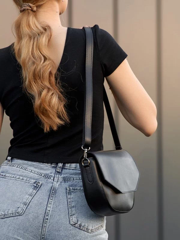 Трендова жіноча сумка-кросбоді чорного кольору на всі випадки життя.