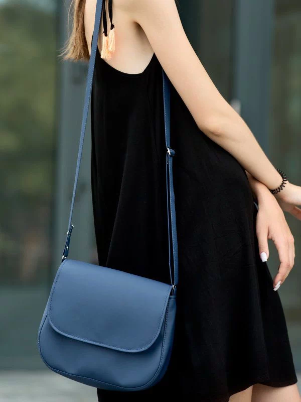 Блакитна сумка через плече з фактурної натуральної шкіри