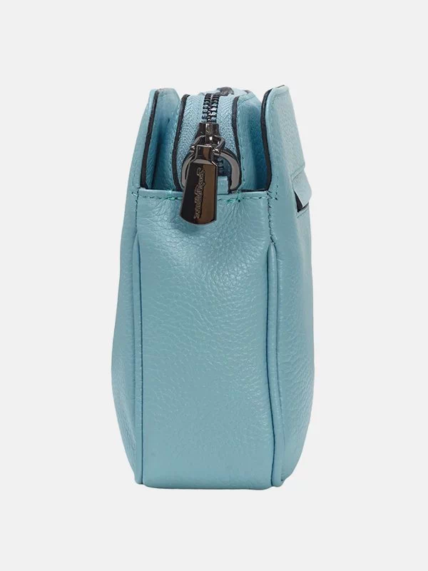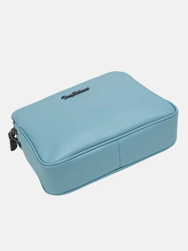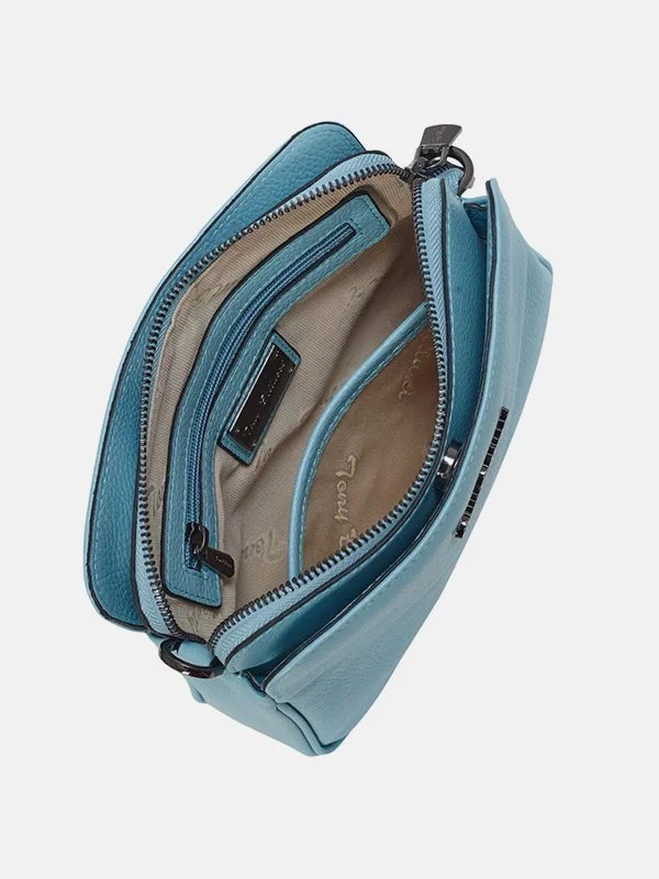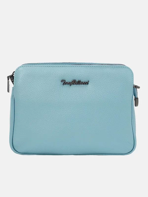 Жіноча сумка TB-4721 – оптимальне рішення для грошей, будь-яких дрібниць (косметики, ключів, павербанків, навушників, смартфонів, зарядних пристроїв тощо). Пошита з зернистої натуральної шкіри блакитного відтінку. Сумка невибаглива за доглядом, має акуратний вигляд, якісний пошив. Вигідно доповнить практично будь-який образ. Країна виробник – Туреччина.