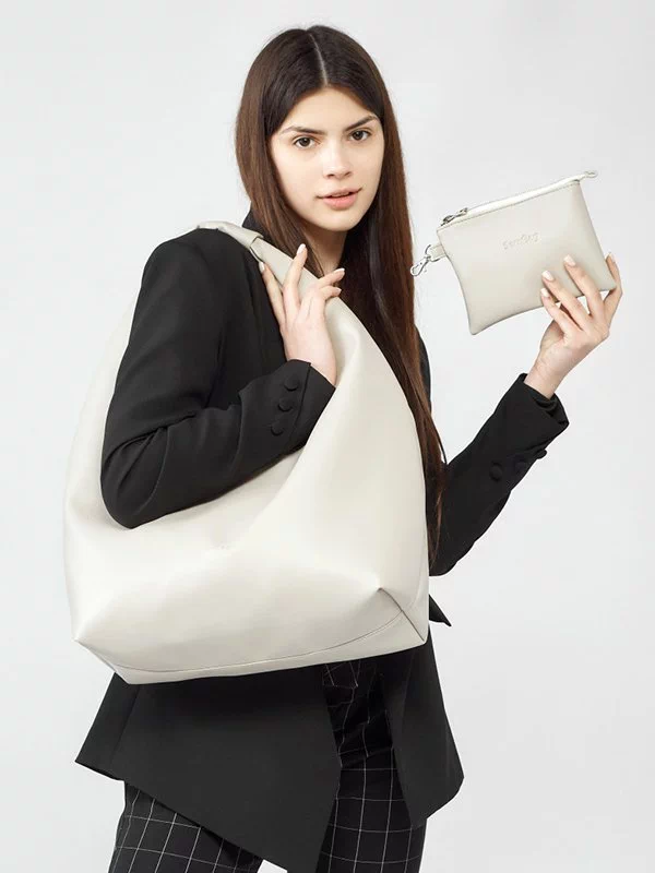 Шикарна жіноча сумка світло-сірого кольору на всі випадки життя.
