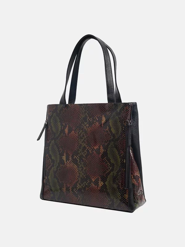 Вишукана шкіряна сумка-шопер з принтом «під рептилію»