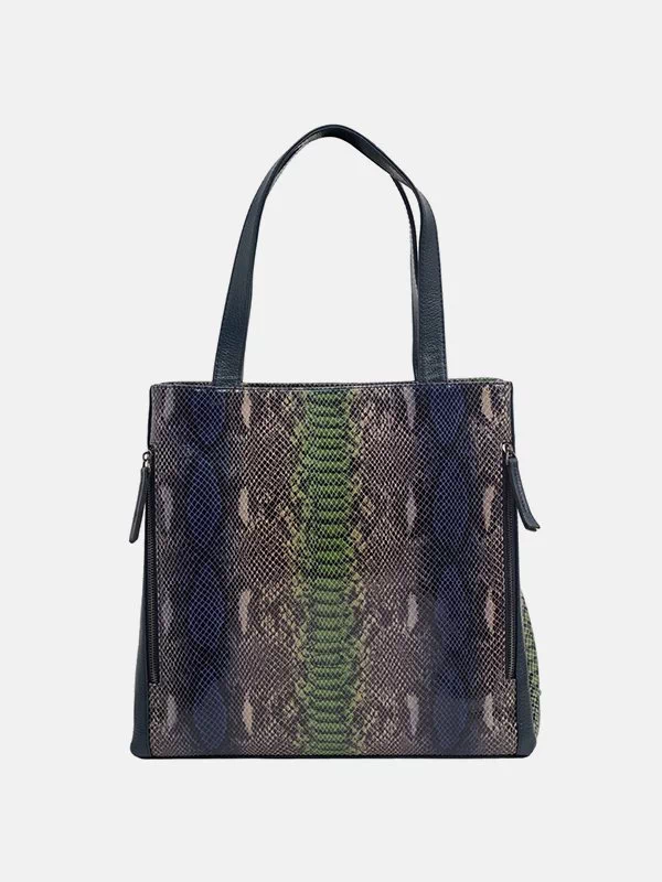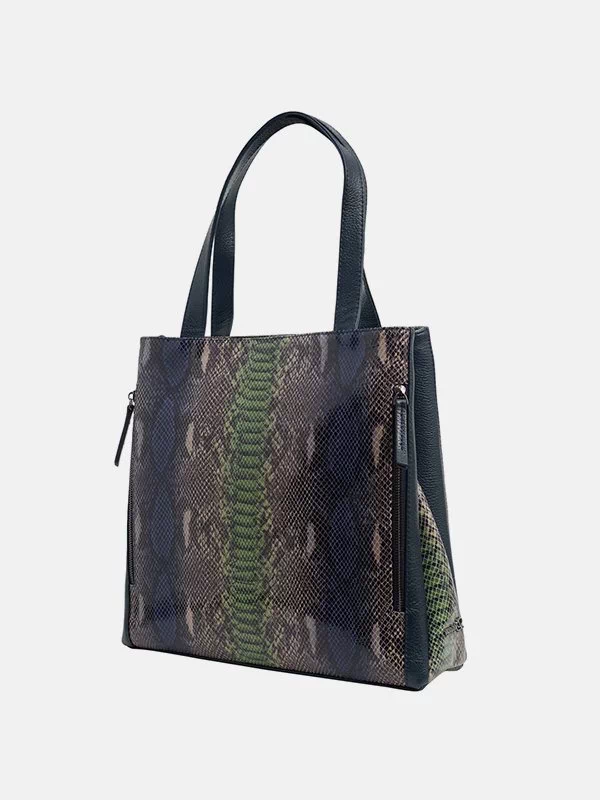 Різнокольорова шкіряна сумка-шопер з абстрактним принтом