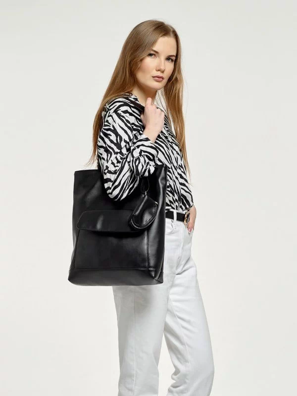 Захоплююча жіноча сумка-шопер чорного кольору на всі випадки життя.