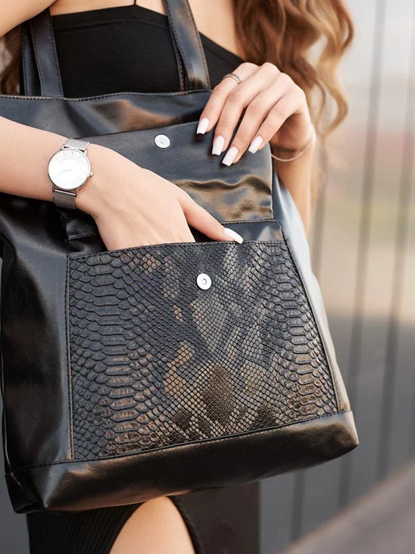 Потужна жіноча сумка-шопер чорного кольору на будь-які випадки життя.