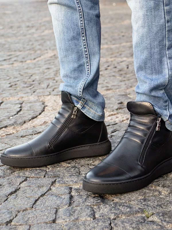 Цікаві зимові чоловічі напівчеревики чорного кольору на будь-які випадки життя.