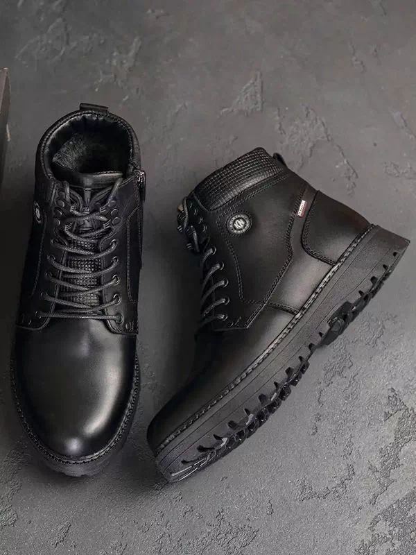 Елегантні зимові чоловічі черевики чорного кольору на будь-які випадки життя.