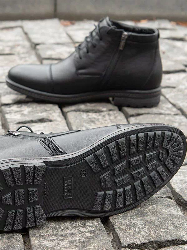 Привабливі зимові чоловічі черевики чорного кольору на будь-які випадки життя.