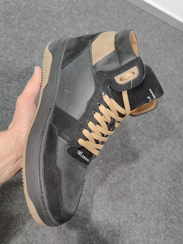 Яскраві зимові чоловічі хайтопи у бежево-чорному виконанні на всі випадки життя.