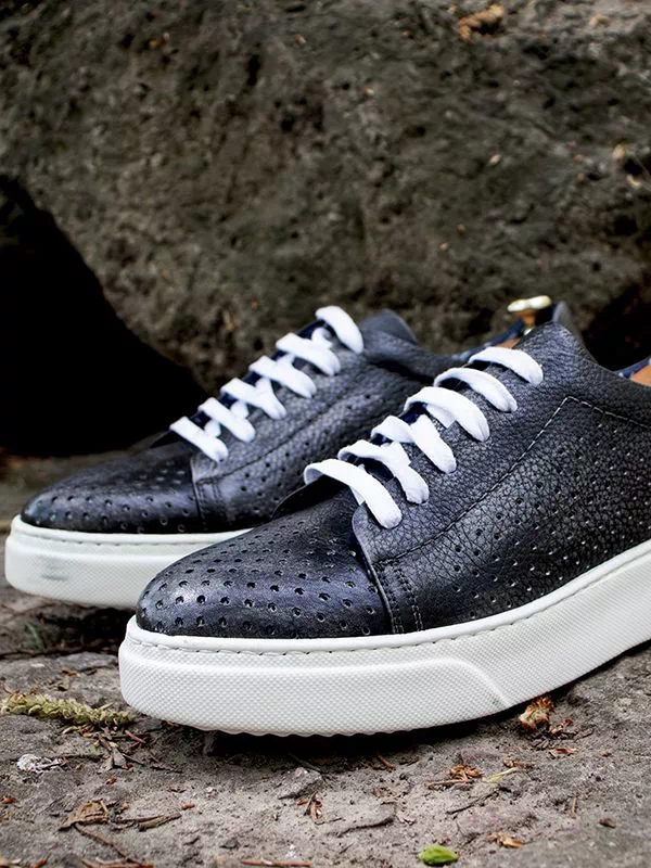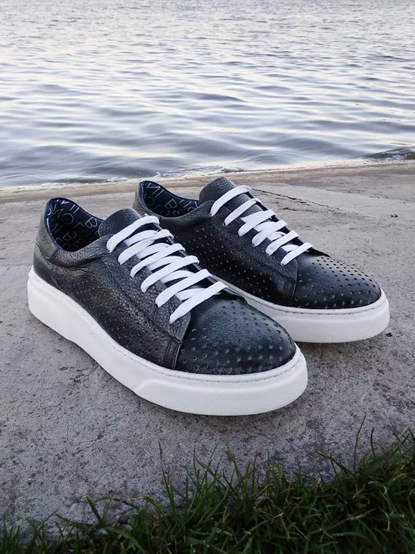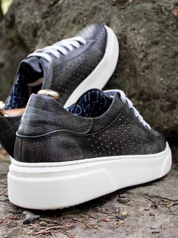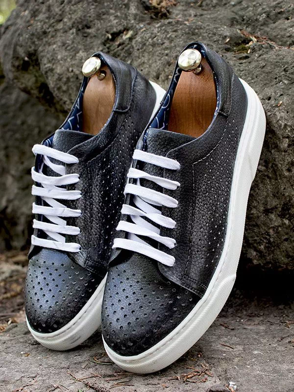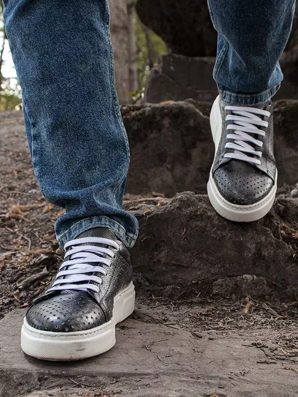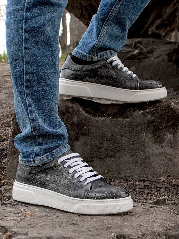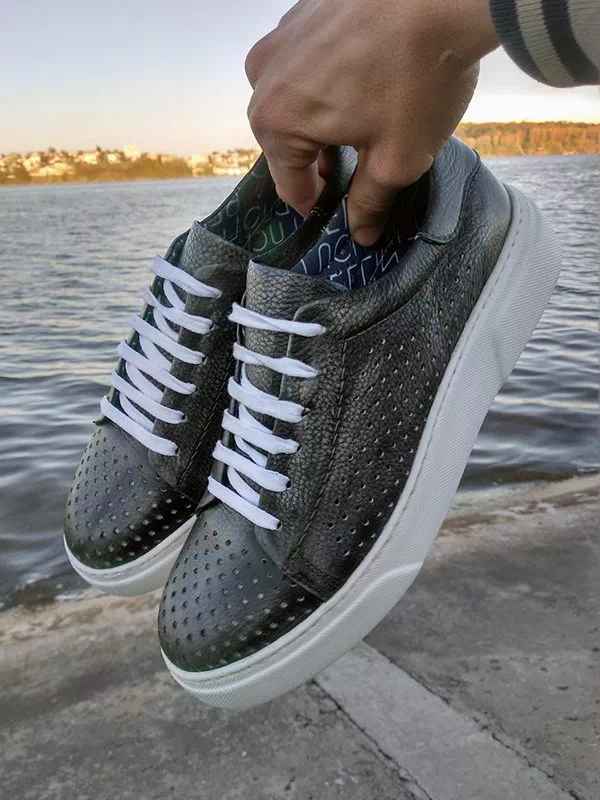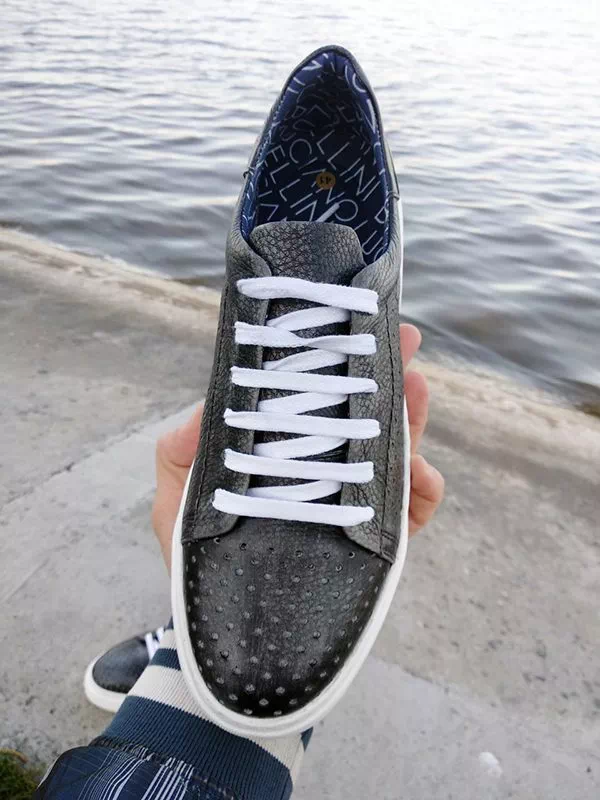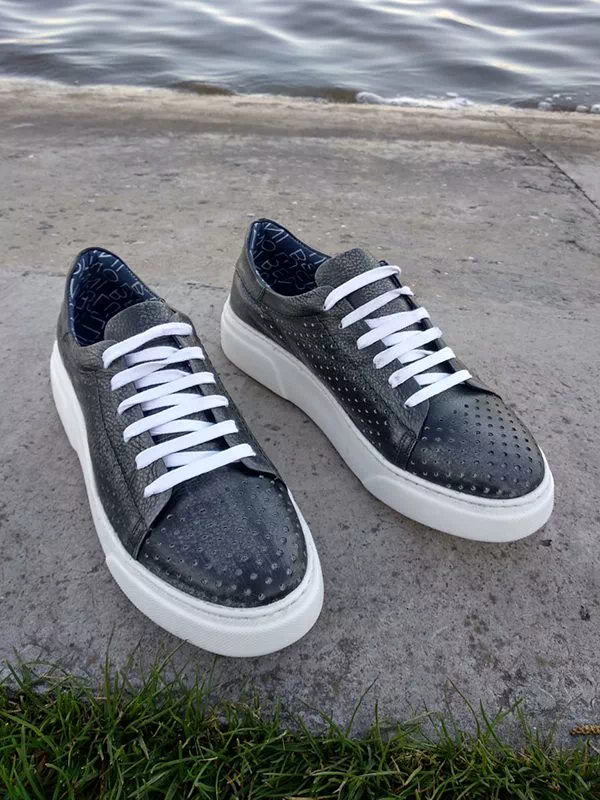 Сірі турецькі літні шкіряні кеди з перфорацією