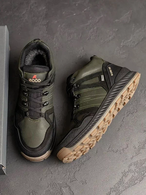 Потужні зимові чоловічі кросівки чорно-оливкового кольору на всі випадки життя.