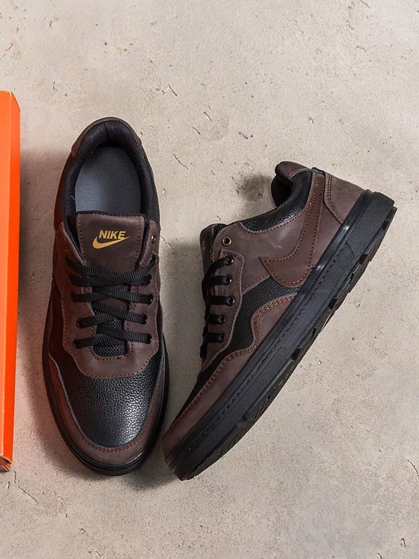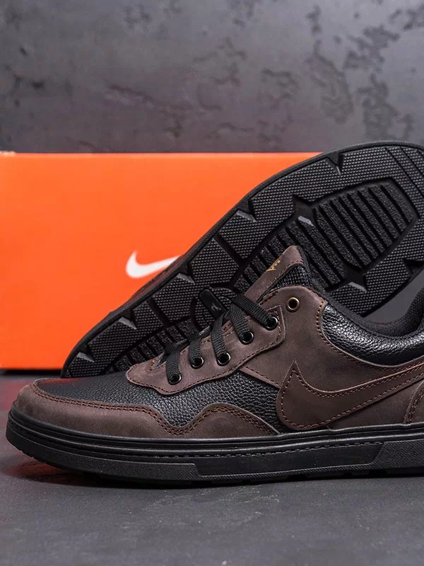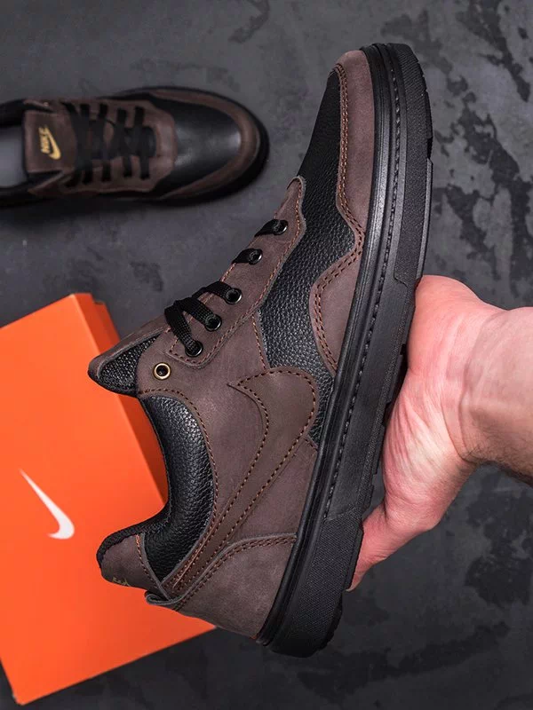 Цікаві чоловічі кросівки у коричнево-чорному виконанні на всі випадки життя.
