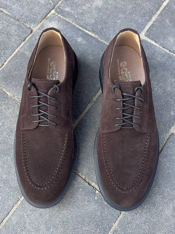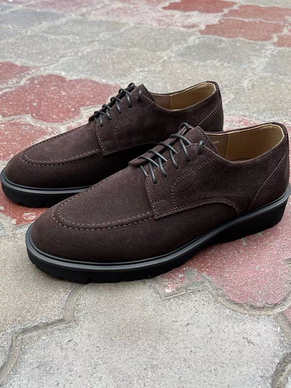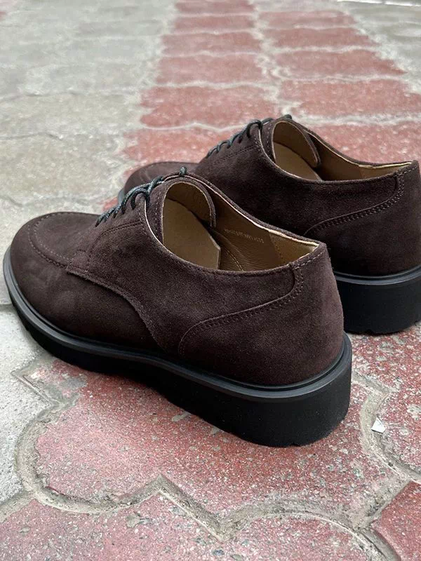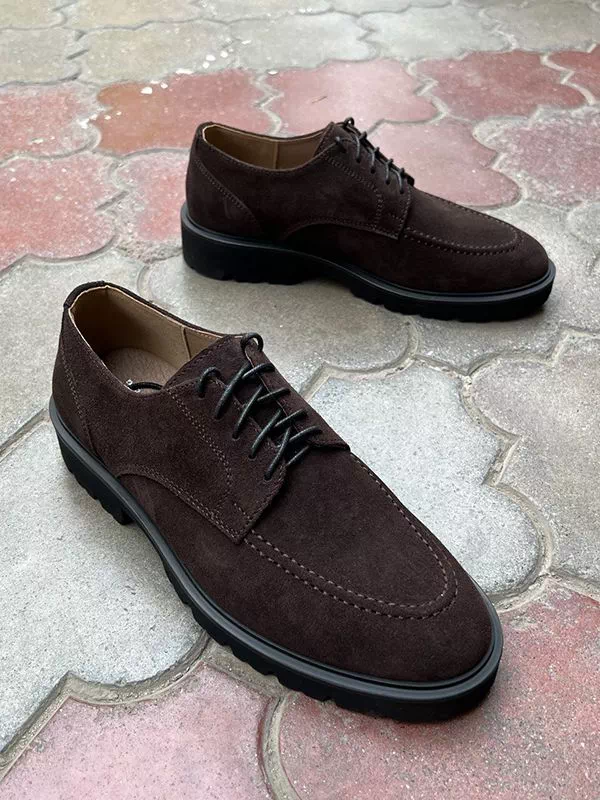 Коричневі замшеві лофери на шнурках та з товстою підошвою