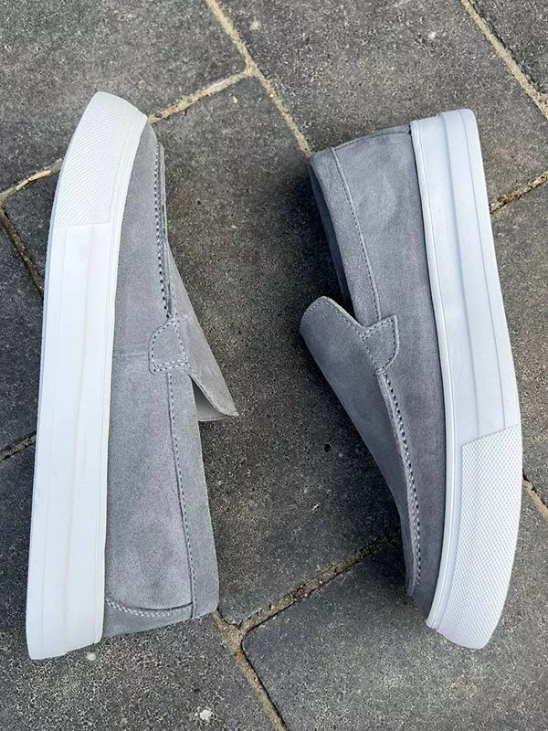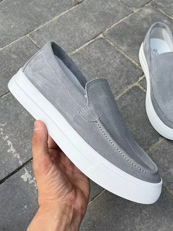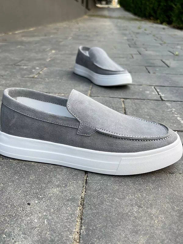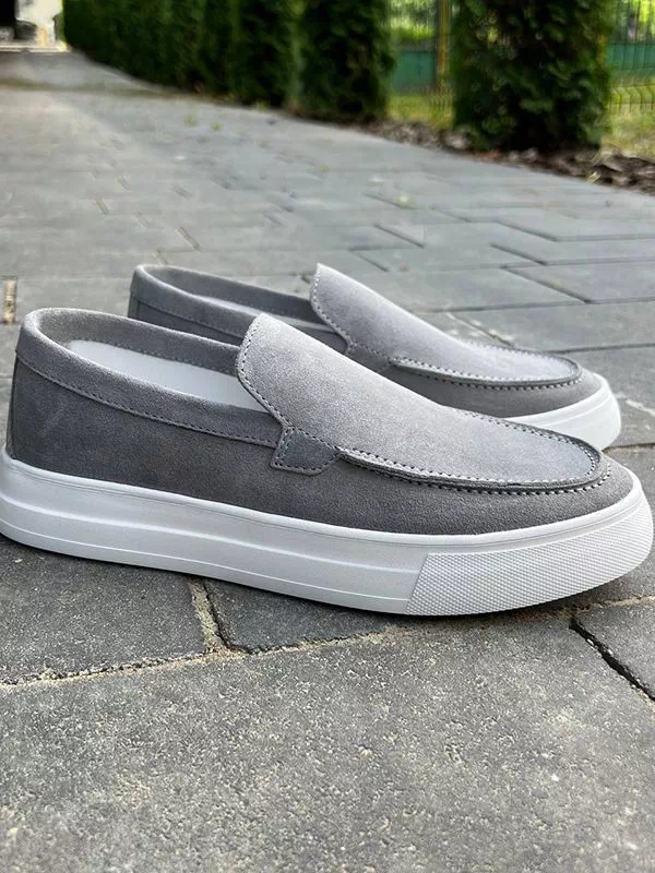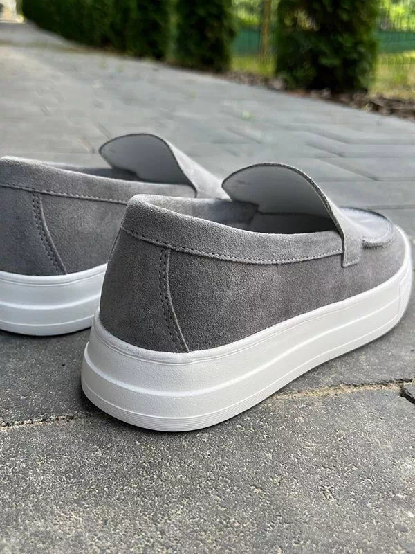 Привабливі чоловічі лофери на товстій підошві, біло-сірого кольору на будь-які випадки життя.