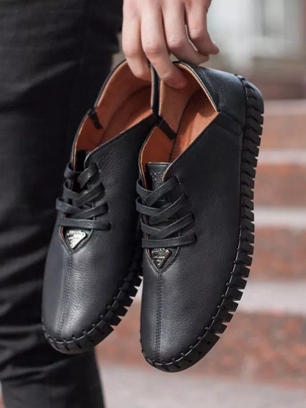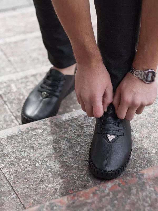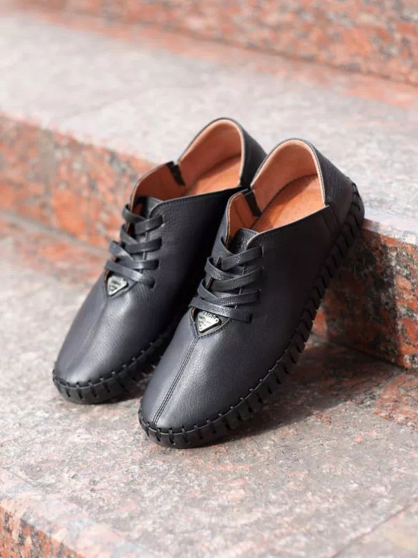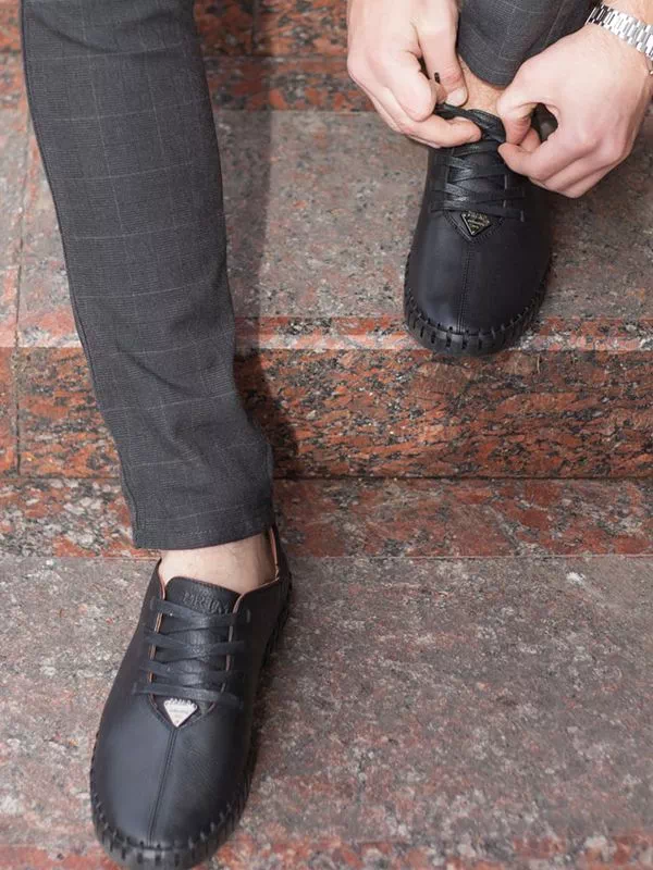 Трендові чорні мокасини з фактурної шкіри на шнурівці