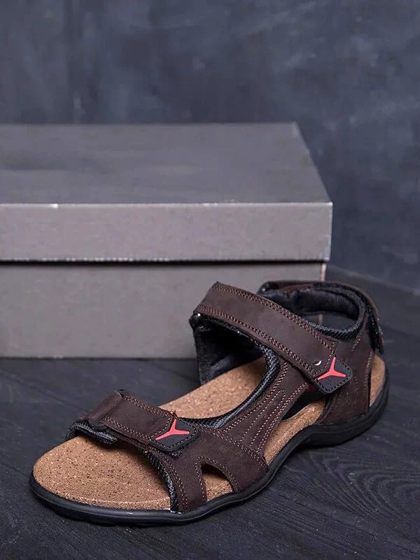 Коричневі сандалії на липучках з матової натуральної шкіри