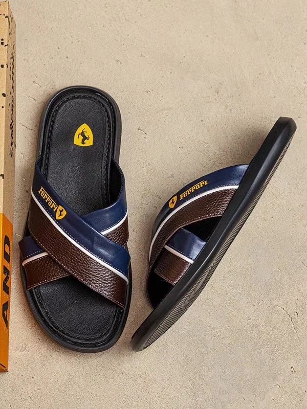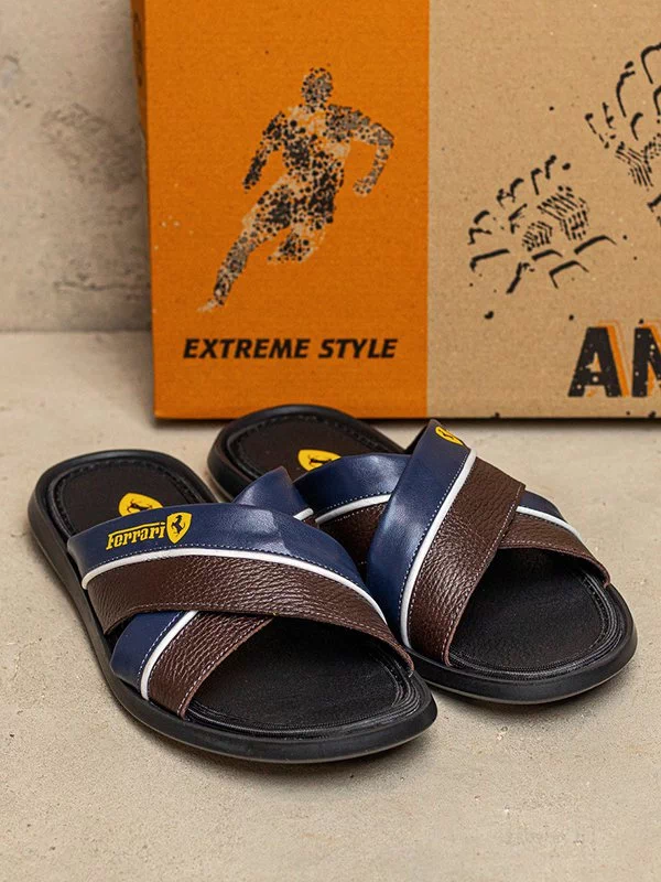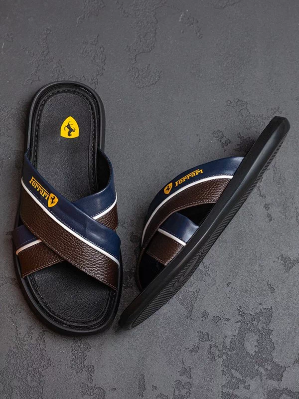 Шкіряні шльопанці у коричнево-синьому виконанні