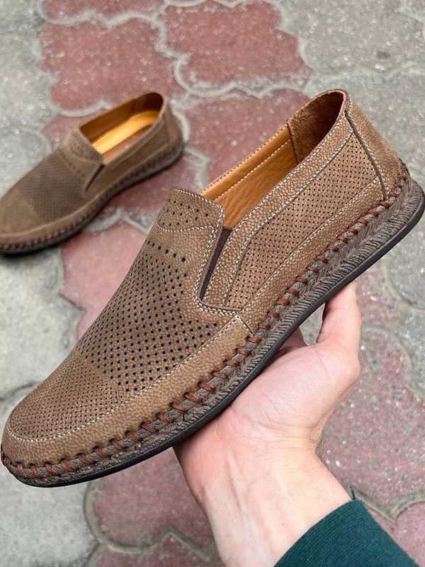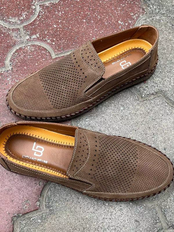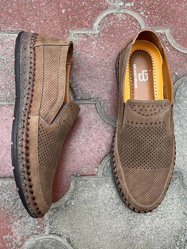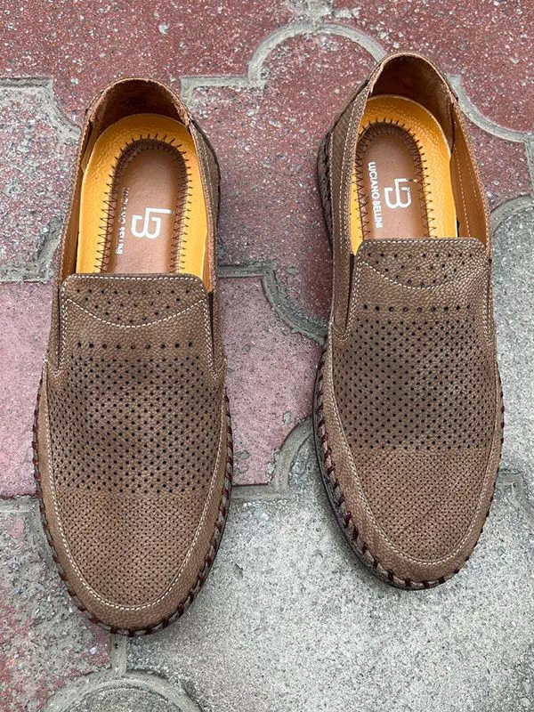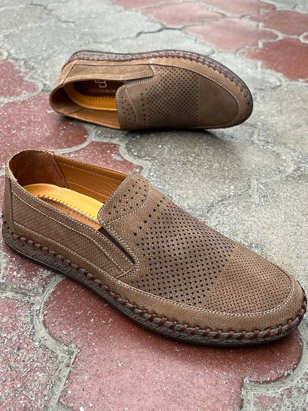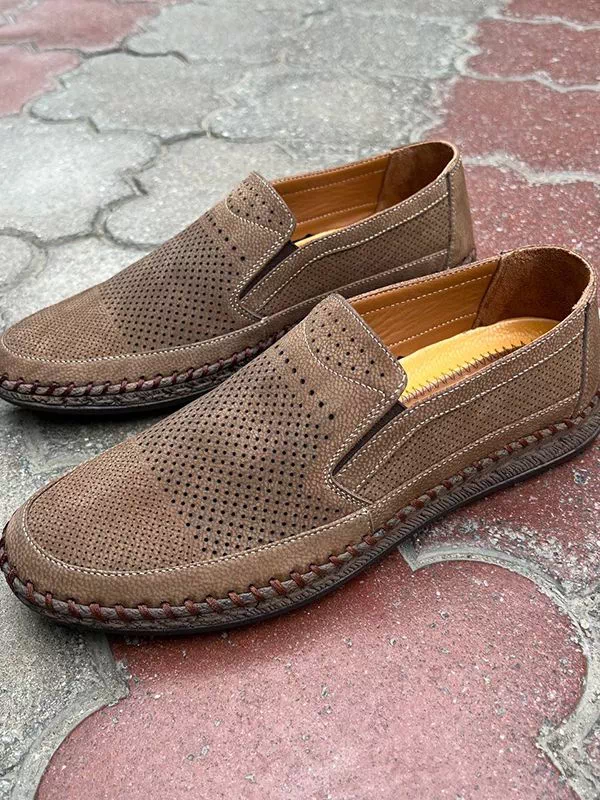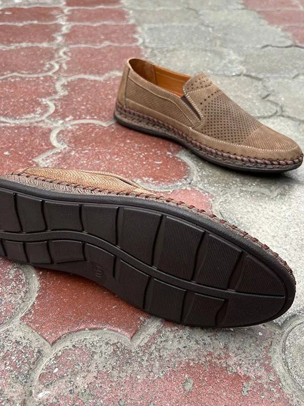 Літні нубукові сліпони коричневого кольору з перфорацією
