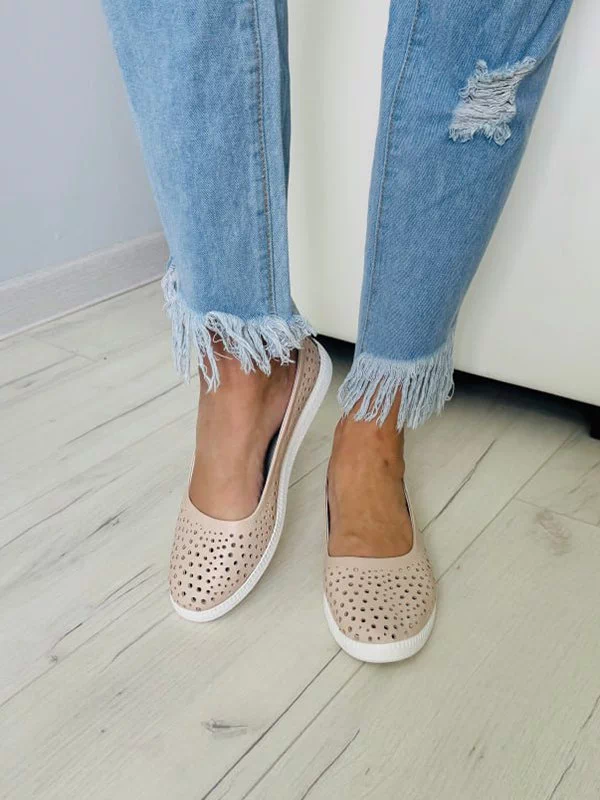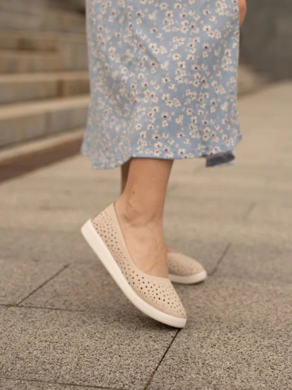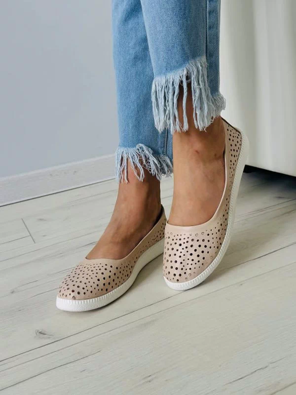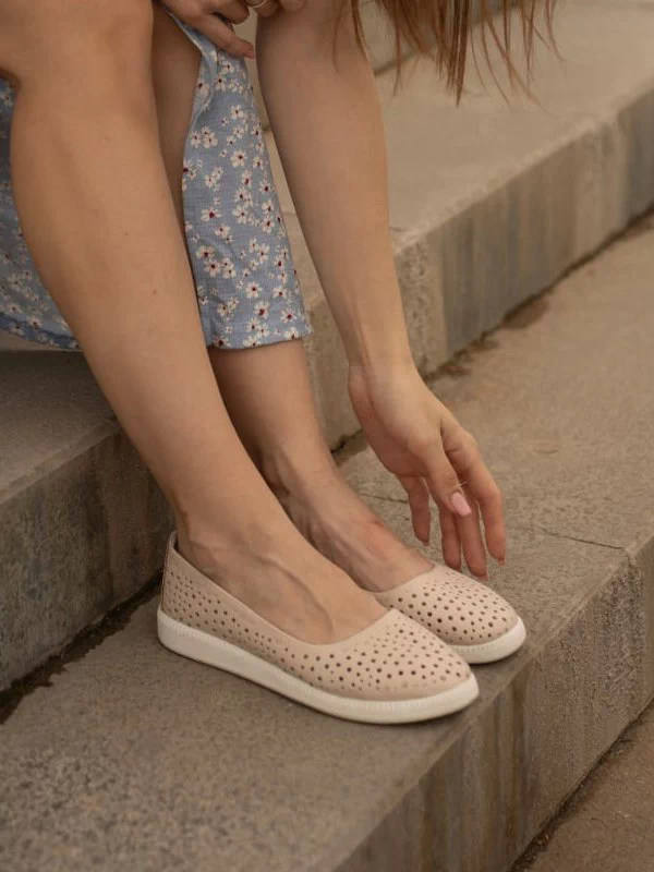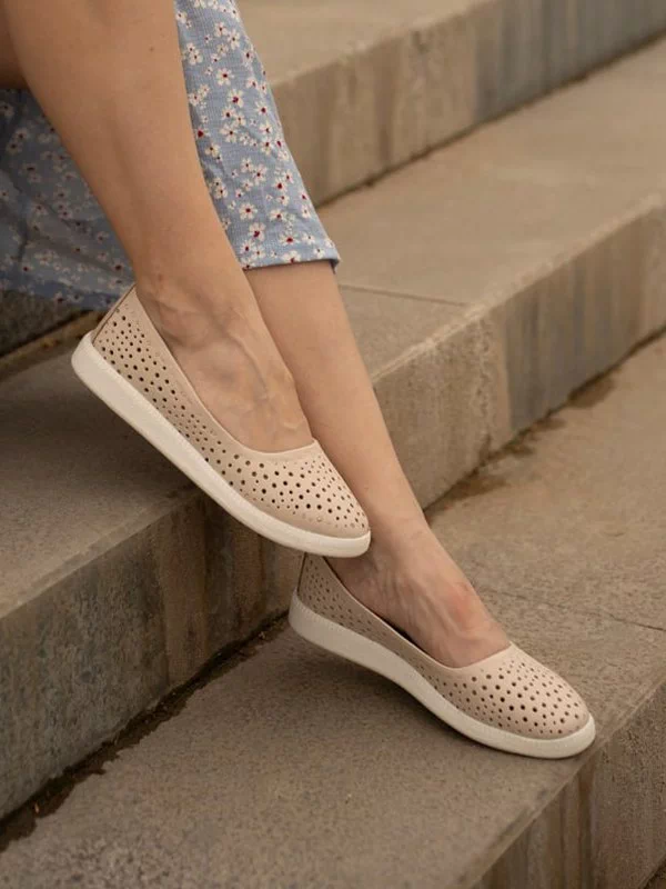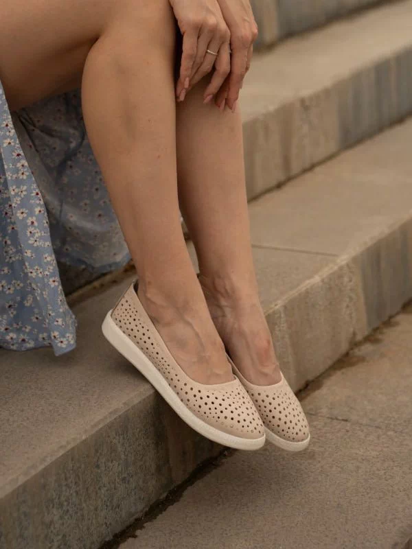 Яскраві літні жіночі балетки у бежевому виконанні на всі випадки життя.