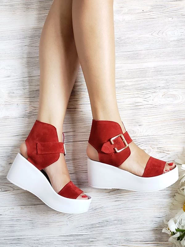 Будьте першим, хто залишив відгук на “Замшеві босоніжки у червоному кольорі на танкетці”