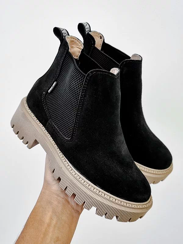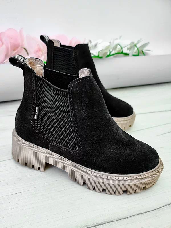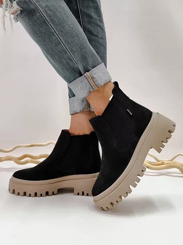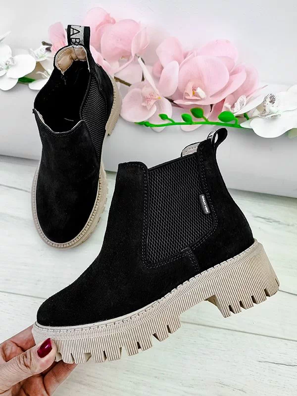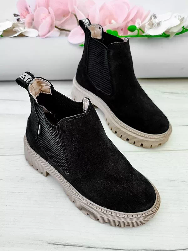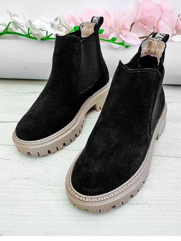 Чорні замшеві осінні челсі на байці з бежевою підошвою