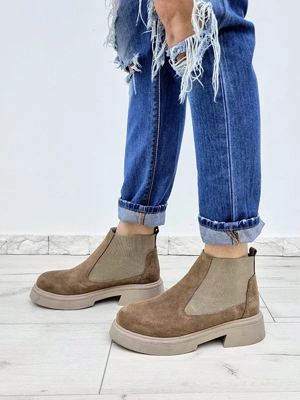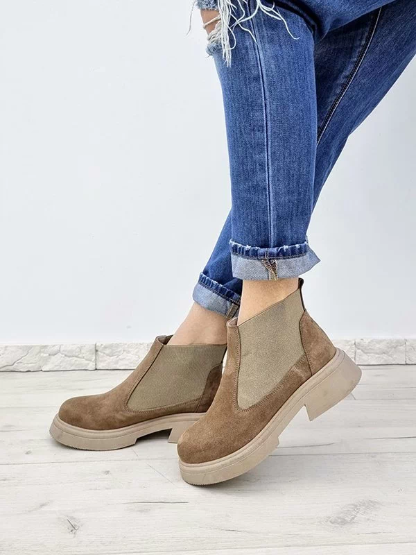 Зимові челсі з натуральної замші темно-бежевого кольору