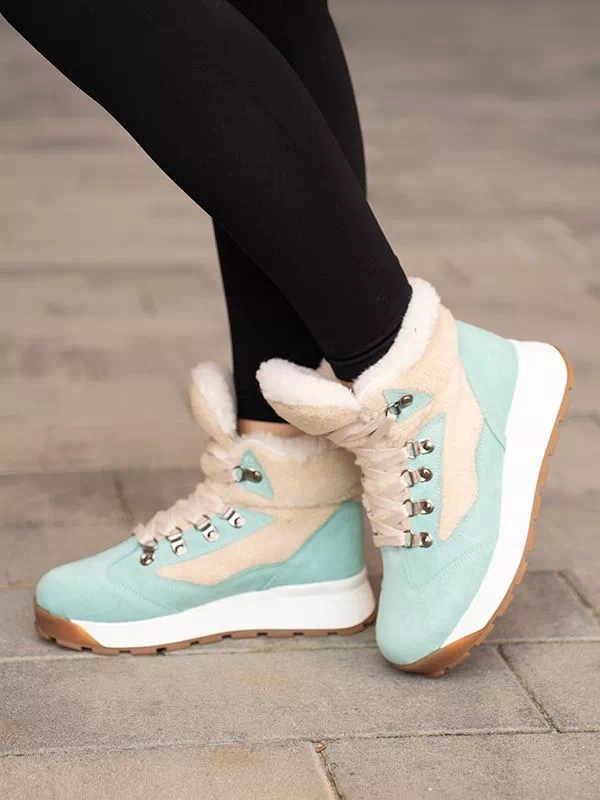 Ідеальні зимові жіночі черевики у бежево-м’ятному виконанні на всі випадки життя.