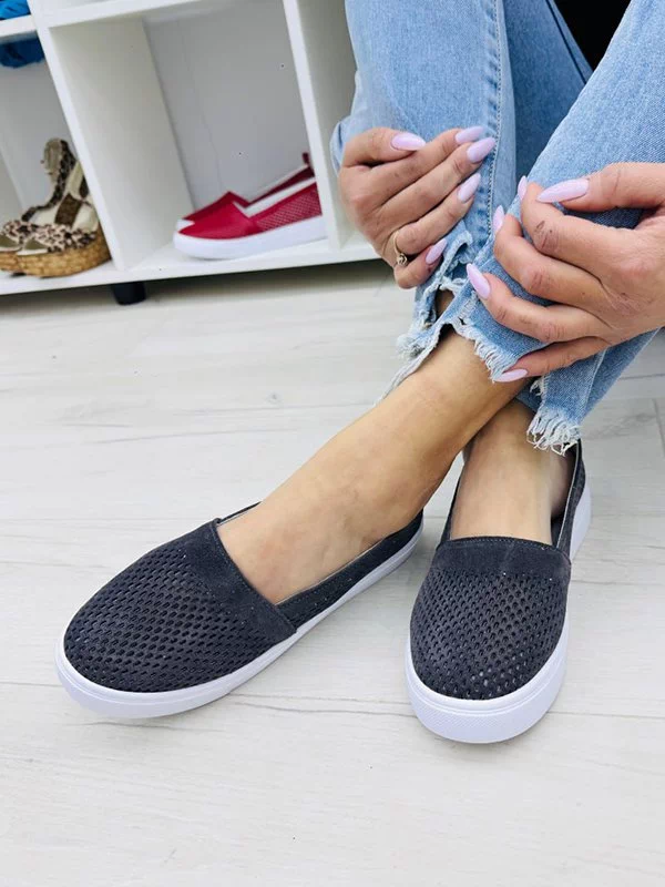 Трендові літні жіночі еспадрільї у темно-сірому виконанні на всі випадки життя.
