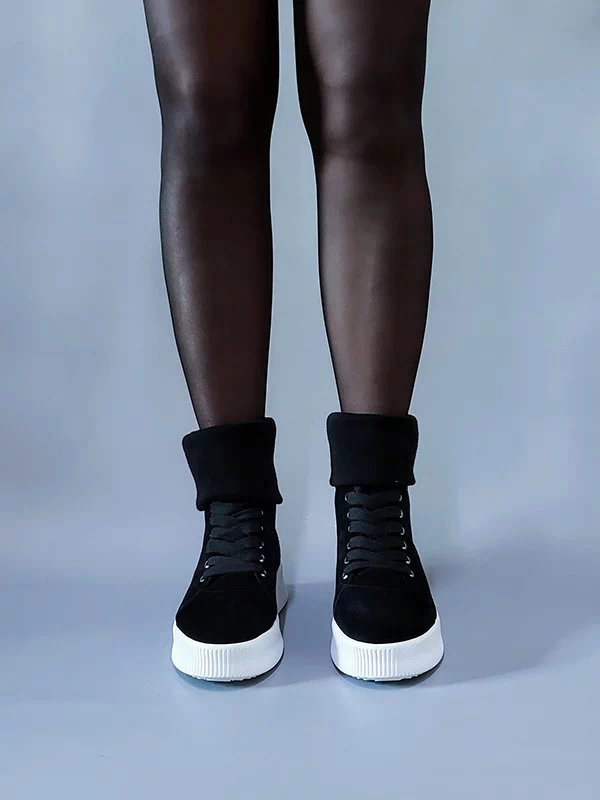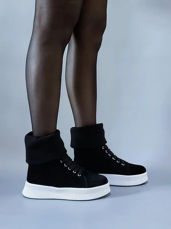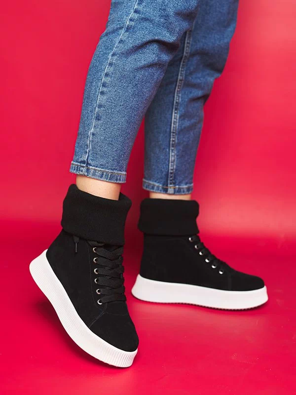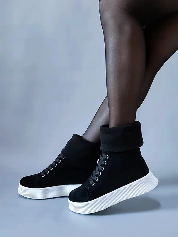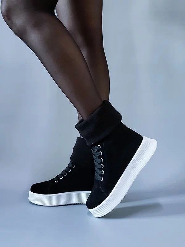 Замшеві осінні кеди чорного кольору на байці з дов’язом