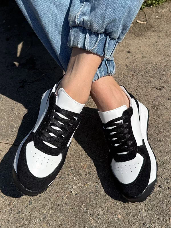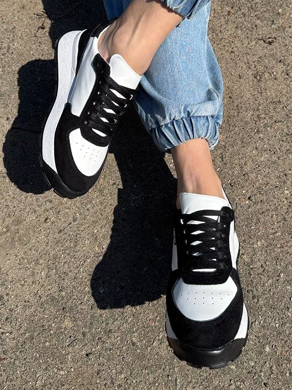 Чорно-білі шкіряні кросівки з замшевими вставками