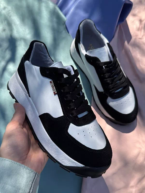 Будьте першим, хто залишив відгук на “Чорно-білі шкіряні кросівки з замшевими вставками”