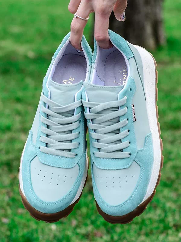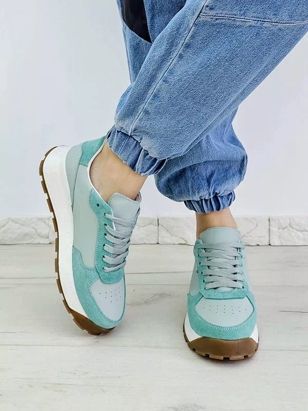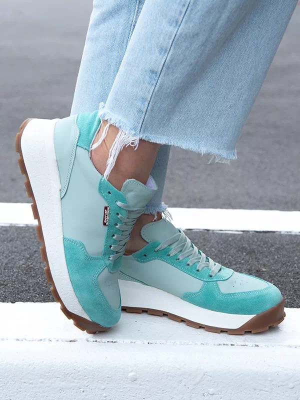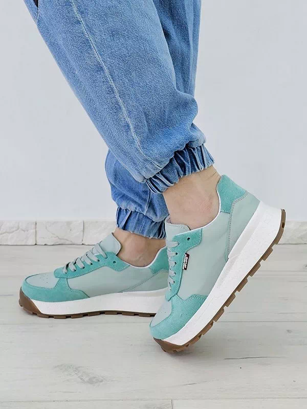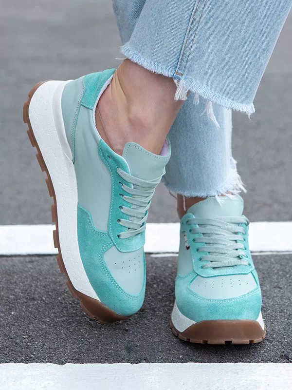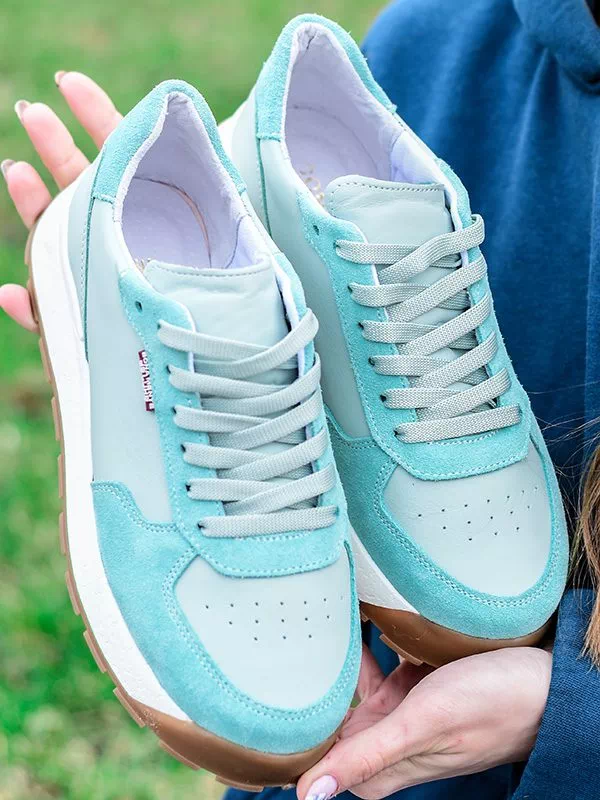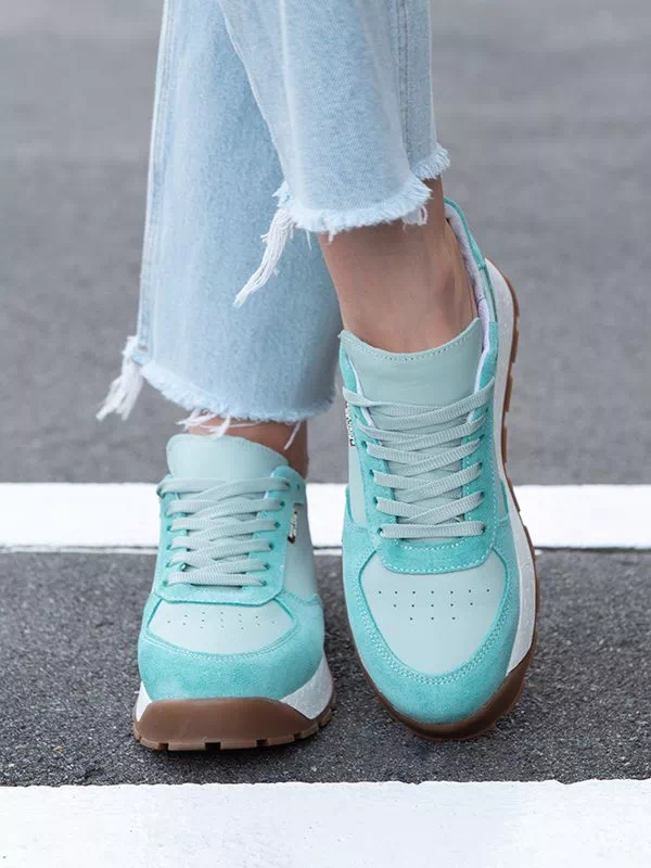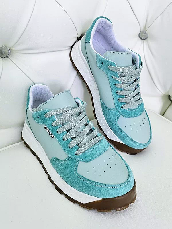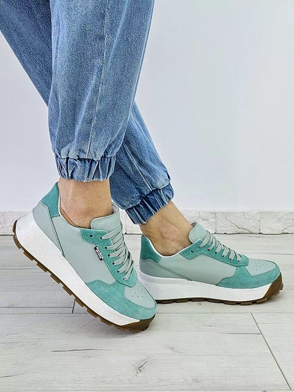 Шкіряні кросівки з замшевими вставками відтінку «м’ята»