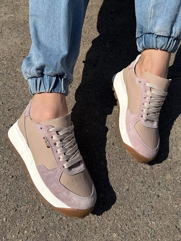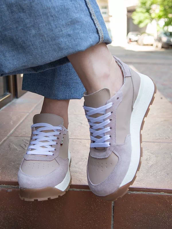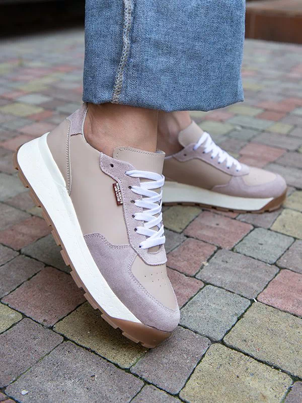 Елегантні жіночі кросівки бежево-пудрового відтінку на будь-які випадки життя.