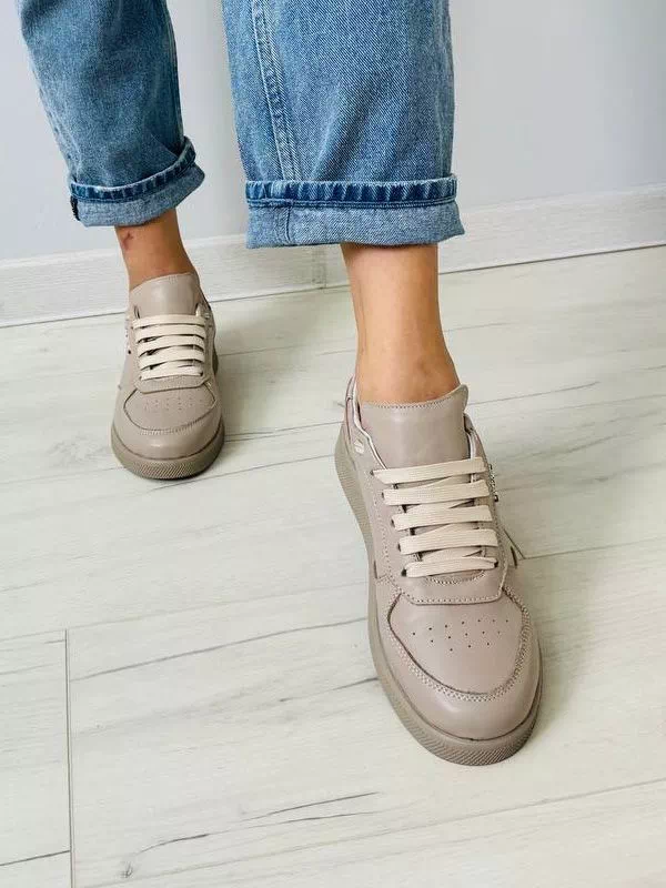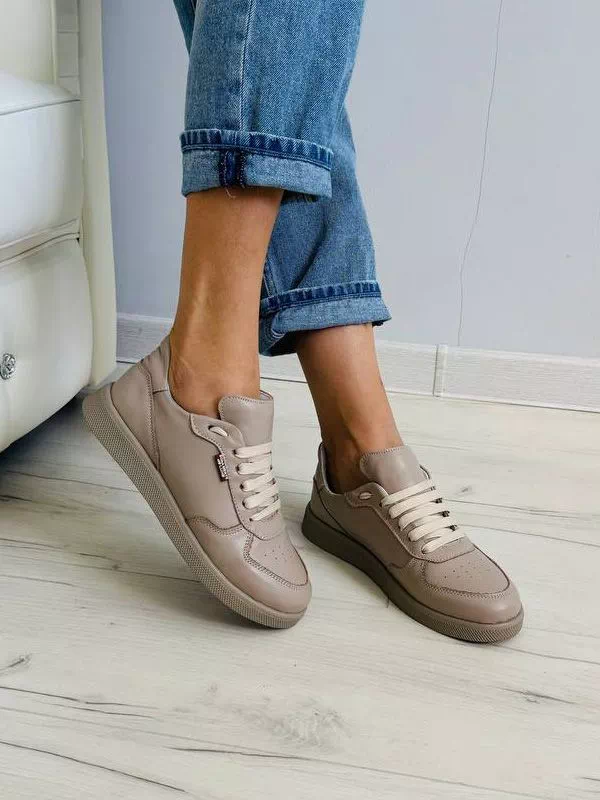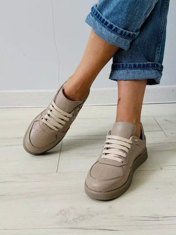 Приголомшуючі жіночі кросівки у темно-бежевому виконанні на всі випадки життя.