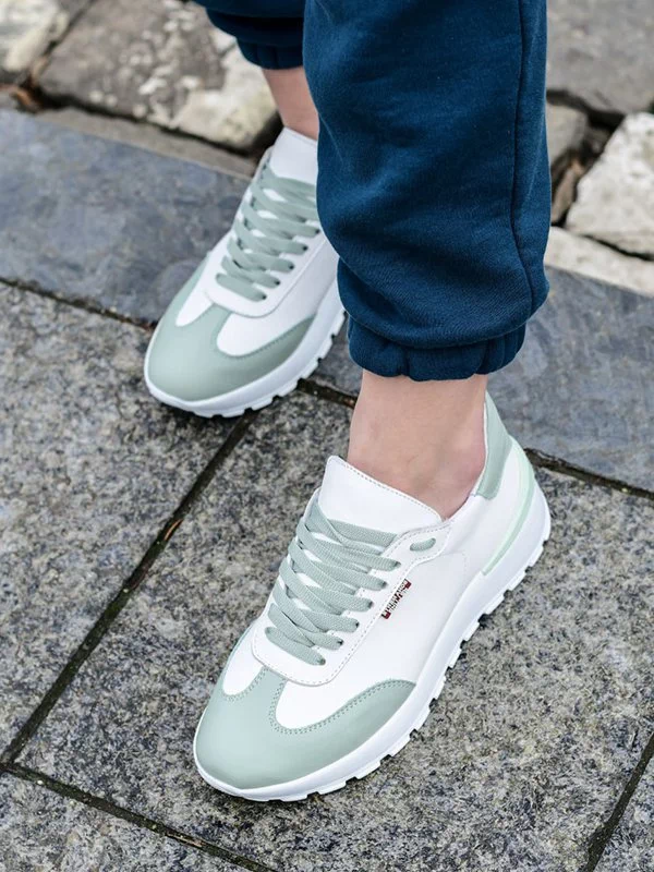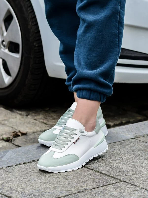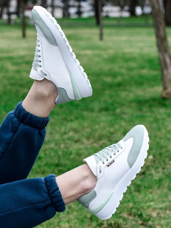 Білі шкіряні кросівки зі вставками відтінку «фреш»