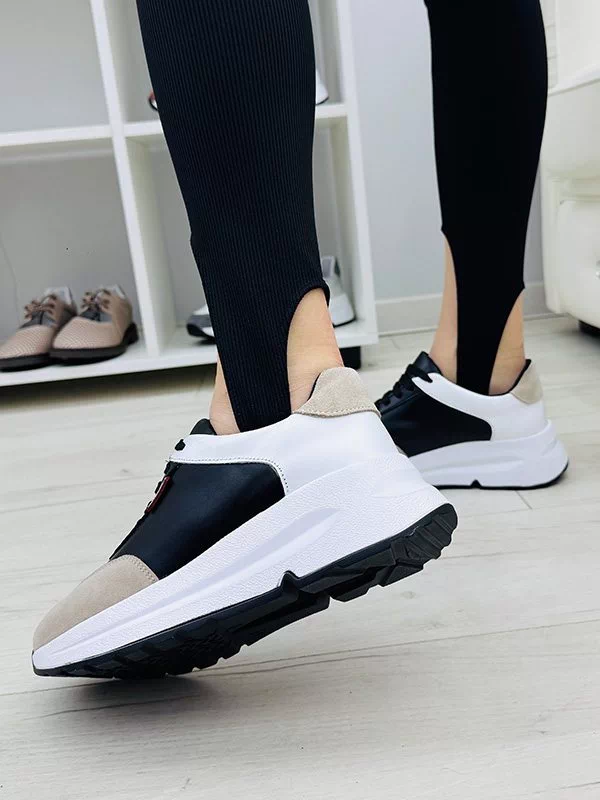 Вражаючі жіночі кросівки у бежево-біло-чорному виконанні на всі випадки життя.