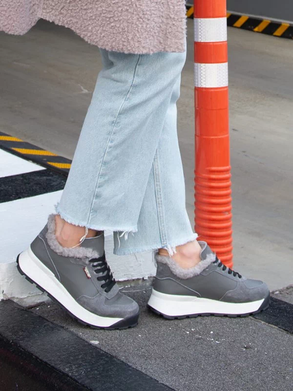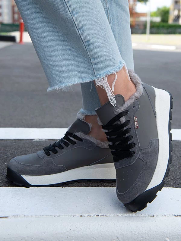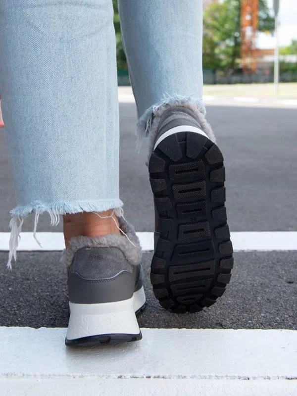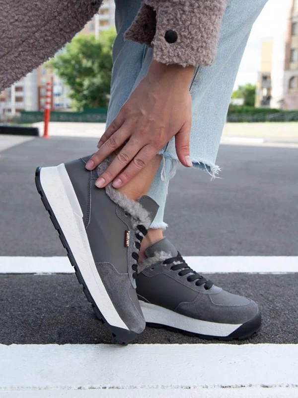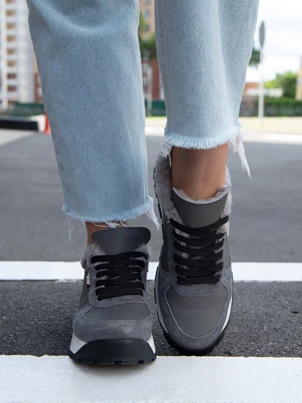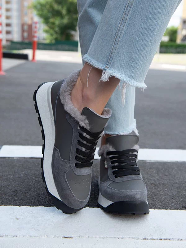 Сірі зимові кросівки з натуральної шкіри та замші