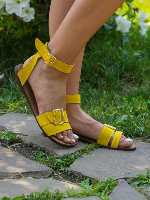 Потужні низькі жіночі сандалії у жовтому виконанні на всі випадки життя.